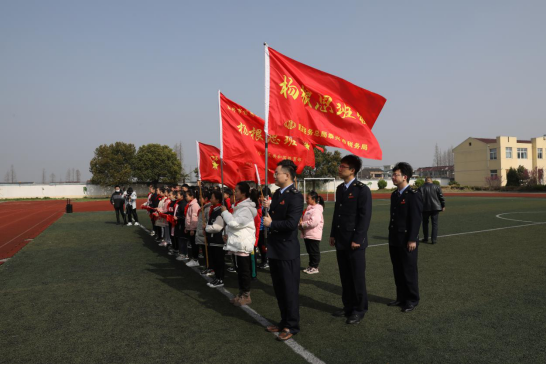 “枪林弹雨冲不去,你忠诚的底色……沿着红旗指引向前进,喊响三个不相信……”在激昂的《英雄宣言》歌曲中,国家税务总局泰兴市税务局“税学联动共建传承英雄精神”走进泰兴市根思小学活动拉开序幕。来自泰兴税务部门“杨根思班组”和“杨根思青税突击队”的青年税务干部,与根思小学“杨根思班”的同学们一起开展丰富多彩的活动。