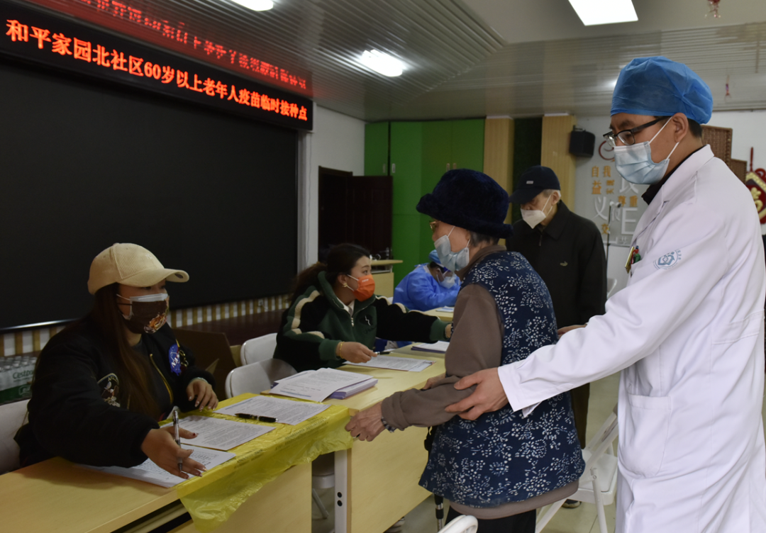 连日来,为方便居民群众,尤其是老年朋友们在家门口就近接种疫苗,街道再次开展疫苗进社区活动,在社区内设置临时接种点,推动疫苗接种走到居民“家门口”,打通疫苗接种最后“一公里”。截至目前,和平街街道60岁及以上的老人接种第一剂次新冠疫苗累计12815剂次。