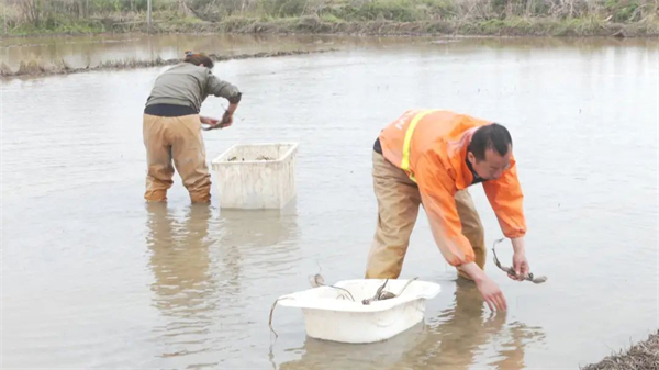 近日,记者来到王家河街花园村看到,沃野田畴处处春耕忙,村民张登峰和家人正在田间忙碌地栽种莲蓬苗。他告诉记者,前几年在外创业回乡后,村支部书记建议他流转村里的闲置土地种植莲蓬,发展农业产业。