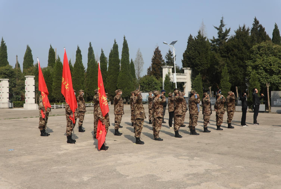“面对庄严的墓碑,我们热血澎湃;面对先烈的英灵,我们热泪盈框。耳边,仿佛回荡着激烈的枪声;眼前,好像还弥漫着战斗的硝烟……”大家在烈士纪念碑和烈士墓碑前肃立,通过集体奏唱国歌军歌、重温入党誓词、向烈士鞠躬默哀、敬献花篮、宣读志愿者誓词、擦拭墓碑、献上寄托哀思的菊花等形式,缅怀先烈、寄思明志。
