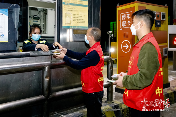 当日晚上7时许,志愿者们从衡东县城杨山高速路口开始,给县域内所有高速路口和县域乡镇路口检测站的一线防疫工作人员送去水果和荠菜鸡蛋汤。“本来很想也去采点荠菜煮鸡蛋,但由于防疫工作原因没能如愿,没想到你们这么贴心。太谢谢啦!”一线防疫工作人员收到这份暖心礼物后,纷纷表示感谢。“感谢大家在疫情防控的关键时期,舍小家为大家,守护人民群众的健康安全,你们辛苦了!”向文韬一边向防疫工作人员分发荠菜鸡蛋汤,一边说道。