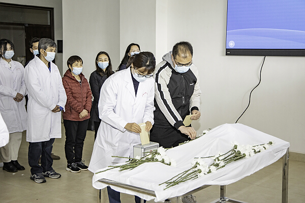 活动中,师生代表进行了发言,全体师生面向大体老师进行了宣誓活动。同学们还纷纷向大体老师献上了鲜花,党员同志向大体老师献信。最后全体师生向大体老师三鞠躬和默哀仪式。
