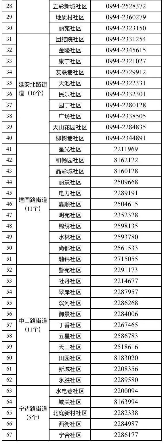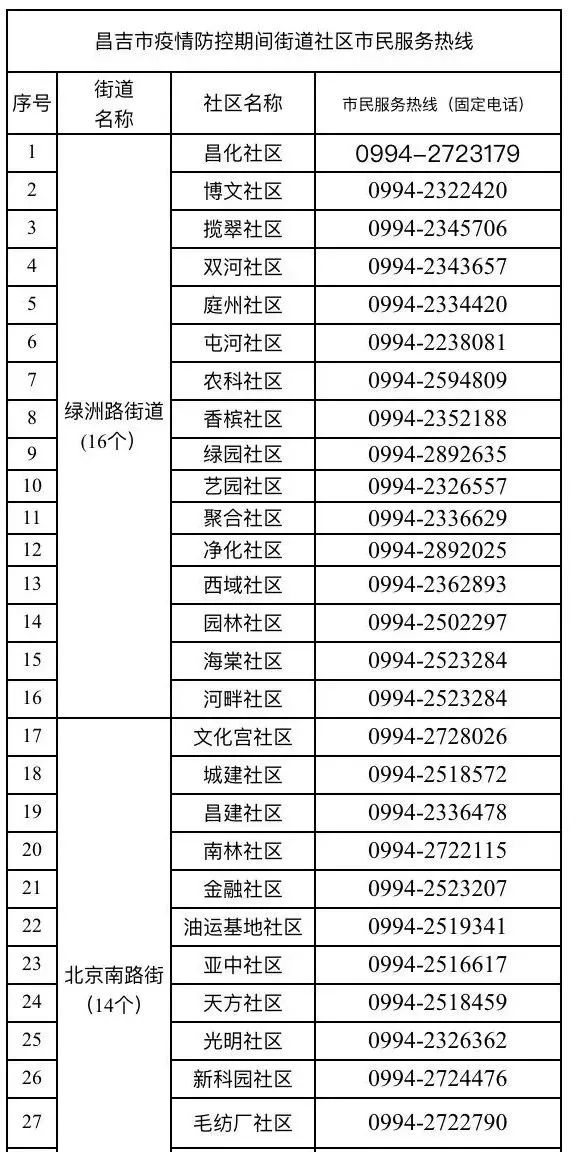 昌吉市公布疫情防控期间街道社区市民服务热线