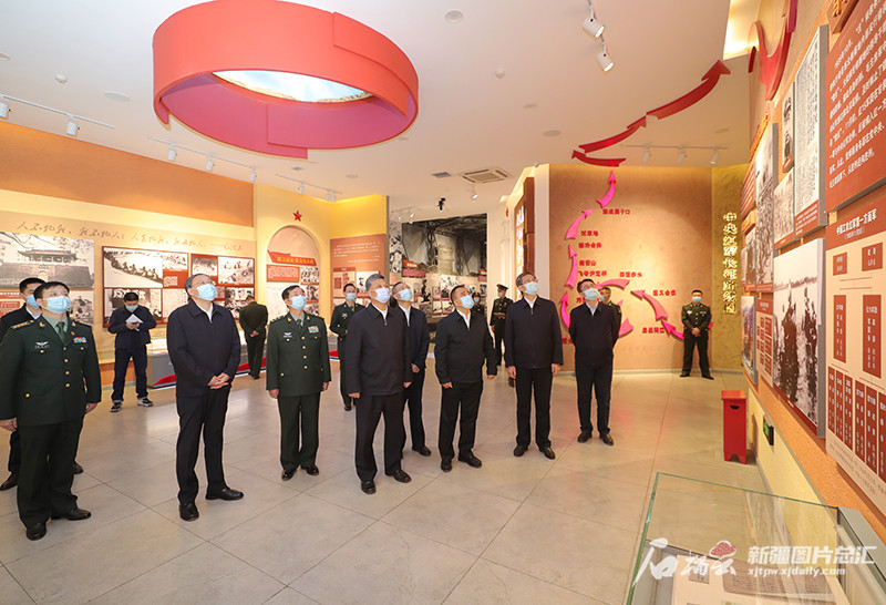 4月5日是清明节。当日,自治区党委书记马兴瑞,自治区党委副书记、自治区主席艾尔肯·吐尼亚孜等来到新疆军区某红军师军史馆认真听取介绍,与部队官兵一同缅怀革命先烈,传承红色基因。天山网-新疆日报记者崔志坚摄