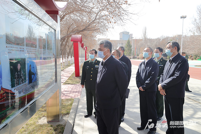 4月5日是清明节。当日,自治区党委书记马兴瑞,自治区党委副书记、自治区主席艾尔肯·吐尼亚孜等来到新疆军区某红军师,在主席故事园与各族官兵一同深入学习习近平新时代中国特色社会主义思想。天山网-新疆日报记者崔志坚摄