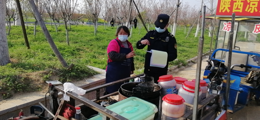 三是路口值守,保障有序。在樱花园东西两侧出入口,安排执法人员20余人定点值守,有效防止因市民大规模涌入,造成人员大范围聚集,导致疫情防控不力的后果。期间,累计安排值守人员20余人,全力维护了广大市民文明出行园区的秩序。