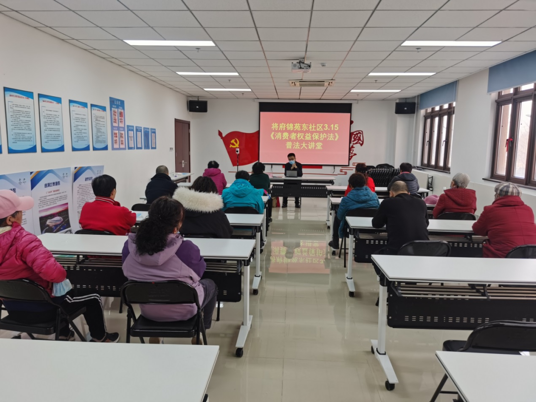 3月10日,将府锦苑东社区开展了“3.15”消费者权益大讲堂宣传活动,旨在提升社区居民自我保护意识和能力,引导消费者降低维权成本,提高消费维权效能。