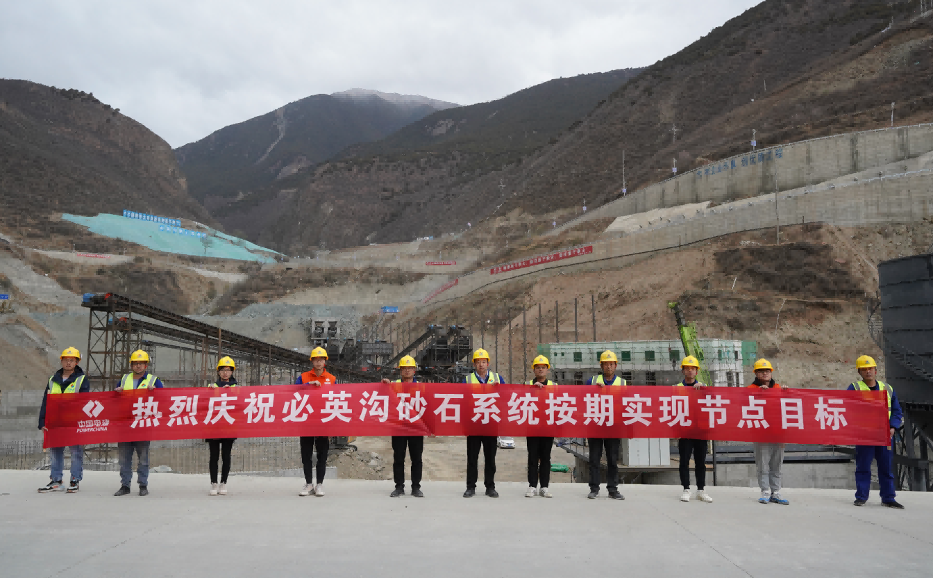 必英沟砂石、混凝土两大系统于2021年9月20日开工。自开工以来,项目全体成员团结一致、砥砺奋进,缺氧不缺精神,倒排施工计划,严格按照砂石、混凝土系统专项施工方案组织施工。克服了场地及地形限制、安装难度大、建设工期紧、森林消防严峻、设备材料进场受阻、高原工作效率较低等困难。经过近6个月的施工建设,顺利完成了土建施工、金结制安、设备安装、系统联动重载试运行等节点目标。