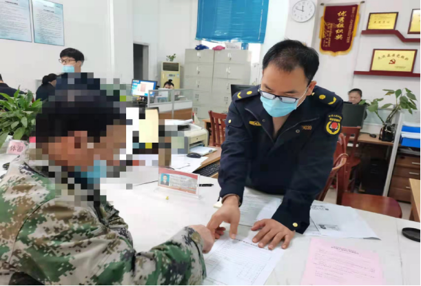 ▲鹿寨镇乡村建设综合服务中心执法人员对秸秆露天焚烧当事人做立案调查笔录