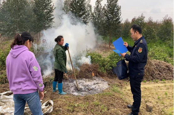 ▲鹿寨镇乡村建设综合服务中心执法人员巡查发现并制止秸秆露天焚烧