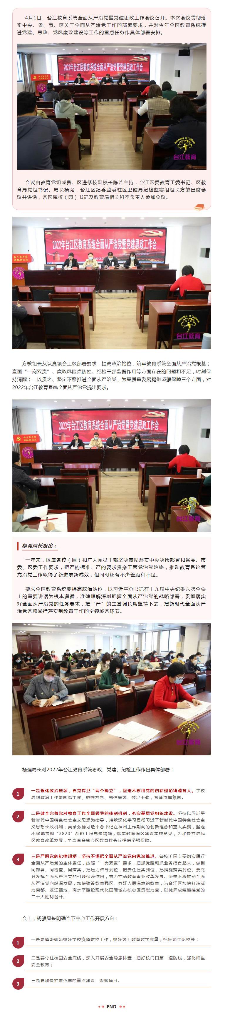 2022年台江教育系统全面从严治党暨党建思政工作会议召开
