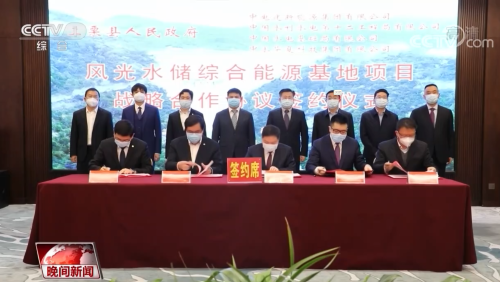4月1日,中央电视台综合频道《晚间新闻》栏目中播报了电建新能源集团与江西省萍乡市上栗县人民政府签约的风光水储综合能源120万千瓦基地项目。