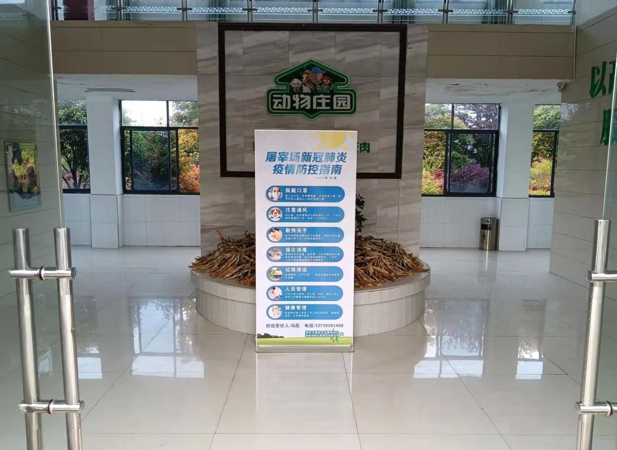 动物庄园生猪定点屠宰场办公楼疫情防控指示牌