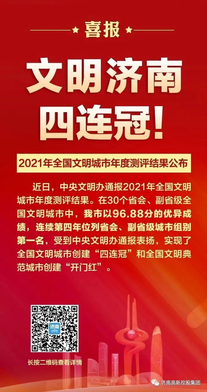 2021再夺第一 济南实现全国文明城市年度测评“四连冠”!
