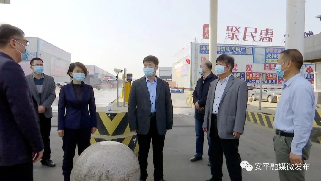 在聚成国际物流园,曹向东查看了人脸识别设备和体温检测新设备,了解了往返物流园货车情况。曹向东要求,要万众一心,坚持群防群控、联防联控,加强消毒消杀,对物流园区人员实行台账式、清单化管理,确保防控全覆盖、无死角、零遗漏。
