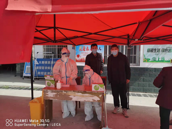 2022年3月28日,疫情爆发后,淮南市各小区和部分道路也实施了封闭管理,袁湖村驻村工作队克服重重困难,绕行瓦埠湖大桥从淮南赶到袁湖村,积极投身到核酸检测的工作中来。到岗后,工作队先是采购价值约500元的口罩、消毒水和洗手液等物资,然后同村两委了解了目前人员力量和总任务数,根据任务分工在核酸检测现场维护秩序。截至目前,工作队协助村两委进行了2轮核酸检测,检测人数共计约2000人次,期间发放宣传单、口罩1000余只。第1轮核酸检测工作结束后,根据上级关于防疫工作的重要指示,驻村工作队和村两委立刻对近期全村从上海、凤台等重点地区返乡人员进行摸排,要求其加大体温监测频率,无特殊情况14日内不得外出,张贴隔离标识,并由网格员和邻居对其进行管控。
