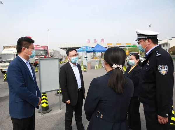 调研中,李光超还来到徐明高速长沟出口,现场查验卡口防疫工作流程,询问执勤人员分工配备、核酸检测点运行等情况,并向在一线坚守的执勤人员致以慰问。他强调,交通卡口疫情防控责任重大,相关部门要紧密配合、顺畅衔接,规范细化查验管控工作流程,对来泗车辆人员严格分类查验,从严落实交通卡口、服务区、卸货区等重点场所的疫情防控措施,确保人不下车、固定路线,全程闭环管理。要合理调配轮换专班力量,做好后勤保障服务,确保一线工作人员保持良好的状态。