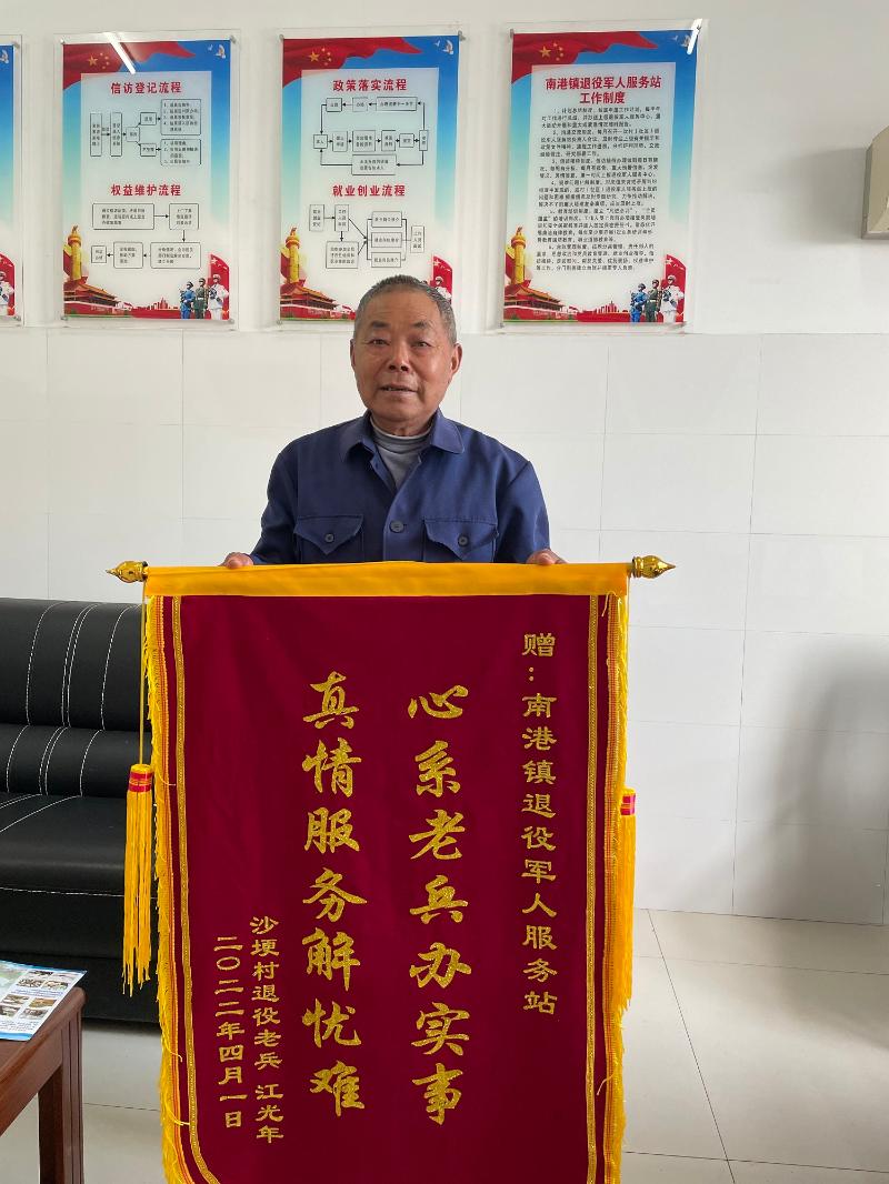 4月1日,舒城县南港镇退役军人服务站就来了一位手持锦旗的老人。当看到服务站的工作人员时,老人激动的走上前将锦旗送到工作人员手中,嘴上不住地说着感谢的话语。服务站的工作人员对这位老人很熟悉,老人名叫江光年,家住南港镇沙埂村,是一名退伍老兵。