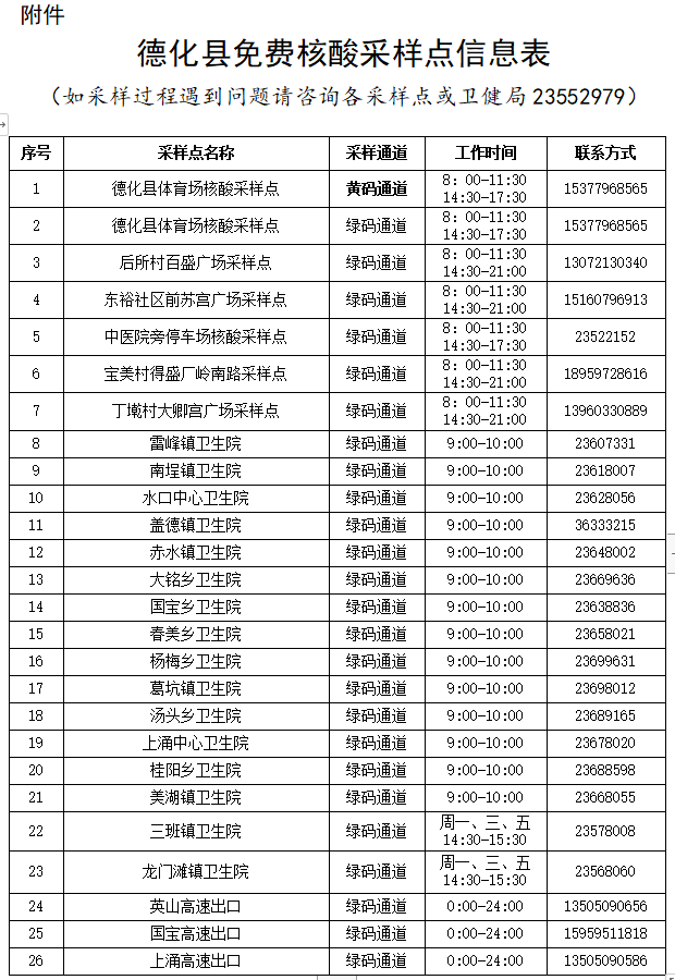 附件:德化县免费核酸采样点名单