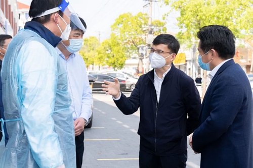 4月21日下午,区委副书记、区长缪京先后来到庙镇和三星镇,实地检查商超门店恢复营业后疫情防控措施落实情况和老年人疫苗接种情况。