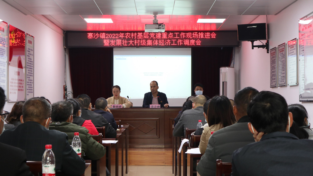 为进一步推进农村基层党组织建设,提升村级党组织书记“一肩挑”履职能力 ,4月20日,寨沙镇2022年农村基层党建工作推进会暨发展壮大村级集体经济工作调度会在寨沙镇龙江村党群服务中心召开,通过现场推进、结对互助、“清单式”管理、专题培训等方式,全力将农村党建工作进一步做实做细做好。