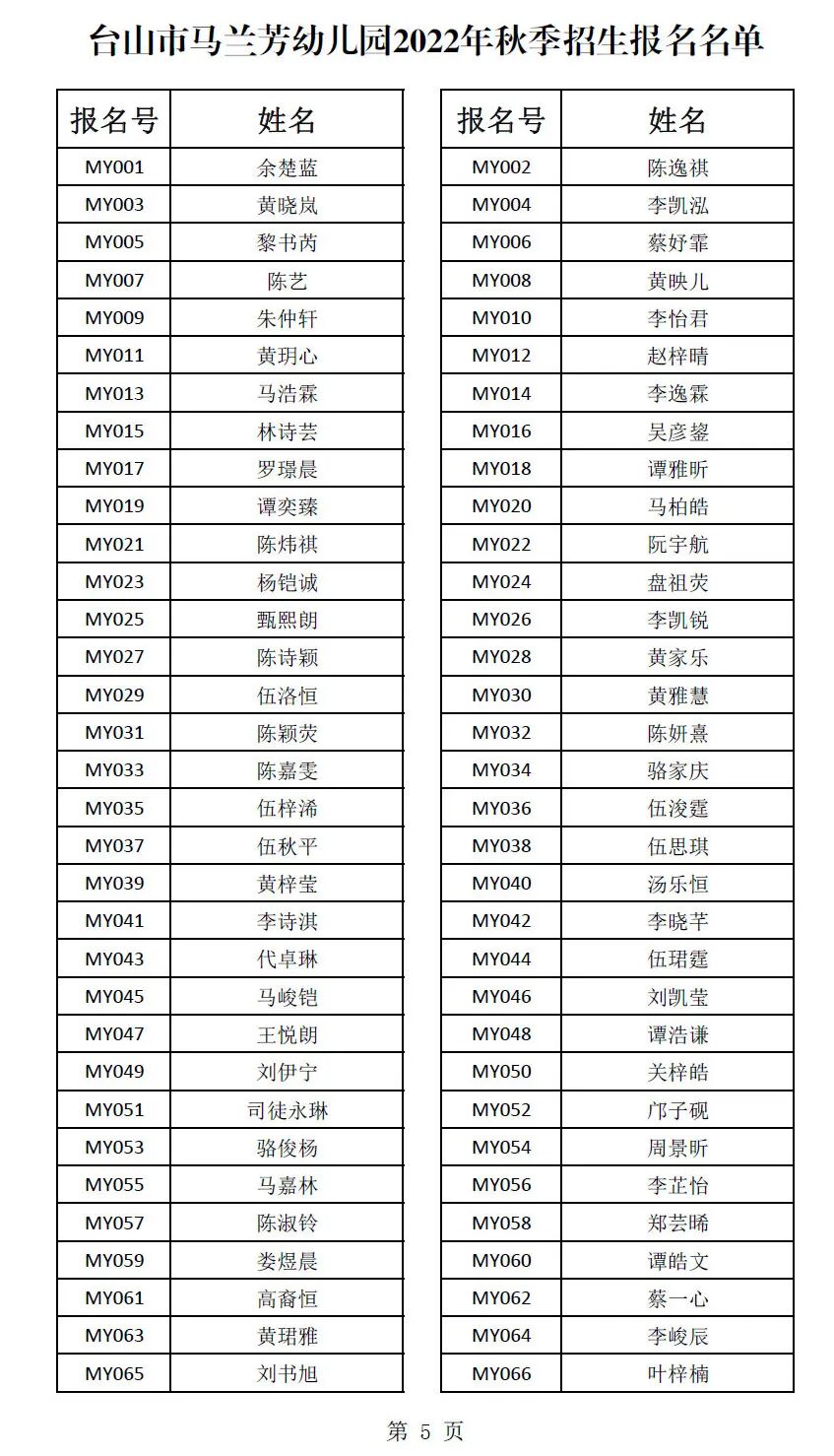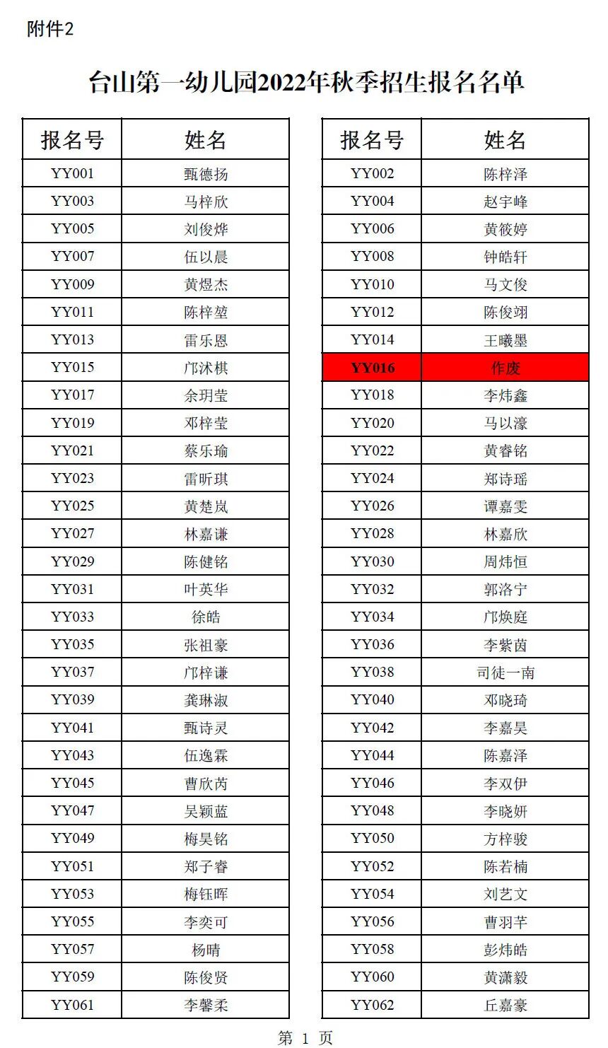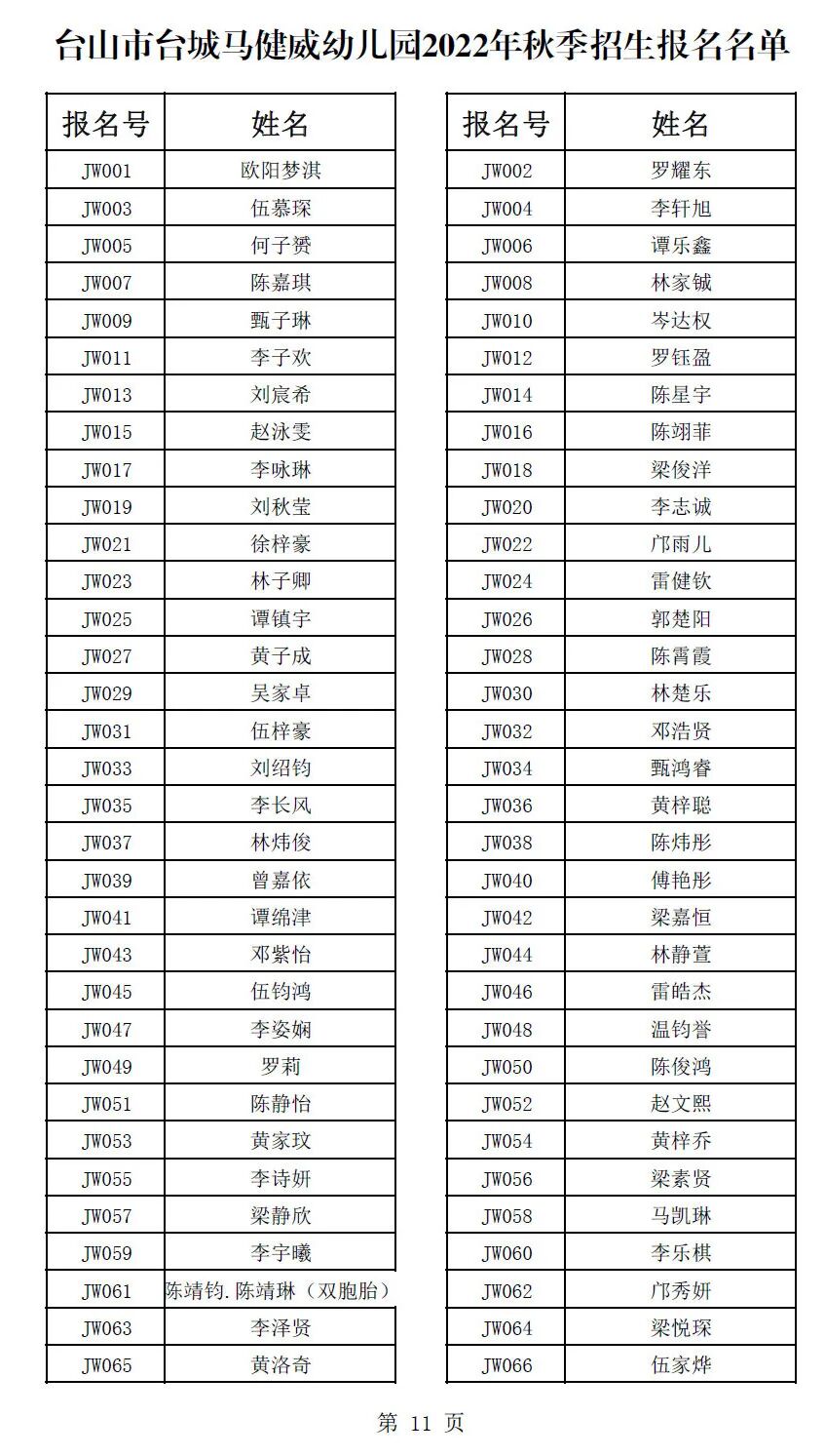 2.台山第一幼儿园、台山市马兰芳幼儿园、台山市台城马健威幼儿园2022年秋季招生报名名单