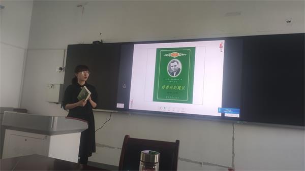 固镇特校为了加强教师基本功训练,开展了“五个一”强基工程:要求每位教师每天要写一块粉笔字、每周写一篇钢笔字、每学期写一篇论文、每学期上一堂公开课、每年至少读一本书并进行读书分享。按照计划,本次读书交流活动共有三位教师进行了读书分享;交流读书心得,畅谈读书感言。分别是杨玉婷老师分享了《给教师的建议》,刘媛媛老师分享了《智力残障儿童教学法》,秦望老师分享了《特殊儿童认知能力训练的原理与方法》。