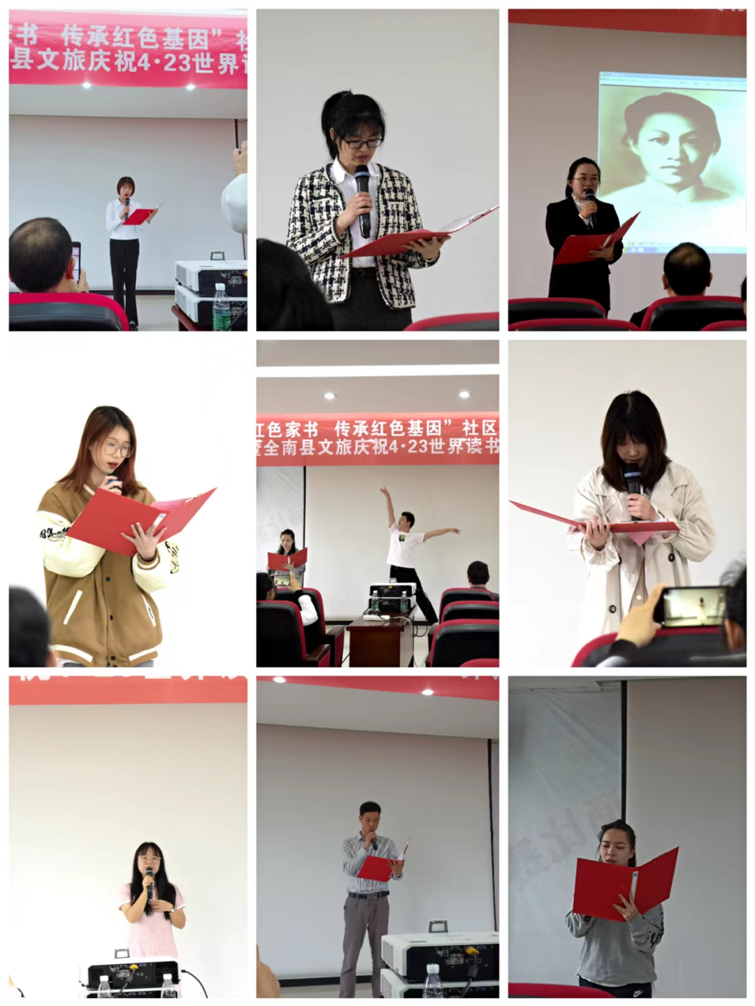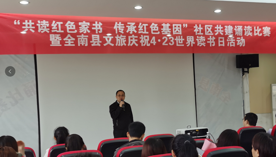 为引导广大干部职工“学党史 知党恩 跟党走”, 了解我党百年奋斗史、传承红色基因、赓续红色血脉,营造浓厚的“读好书,读红色经典”的氛围,以创建让党放心、让人民群众满意的模范机关为契机,4月22日,即在第27个世界读书日来临之际,全南县文广新旅局和城西社区联合开展“共读红色家书 传承红色基因”社区共建诵读比赛 暨全南县文旅庆祝4.23世界读书日活动。
