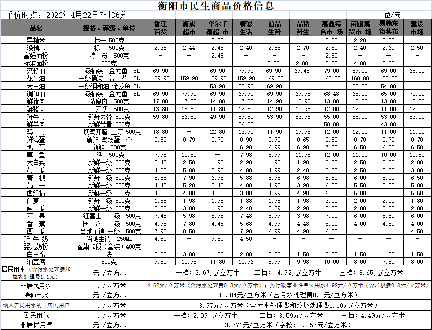 【物价】 2022-4-22衡阳市民生价格信息