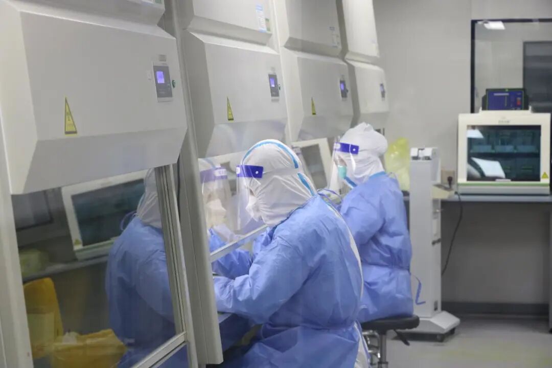 县疾控中心的储银凯、徐明祥、李璐璐、王浦悦,都是90后,主动要求承担涉疫地区来宝人员的核酸检测工作。为了降低生物安全风险,他们不能回家,严格闭环管理。穿上厚厚的防护装备在实验室里埋头苦干,汗水顺着脸庞从鼻尖滴落,双手因为拧开采样管瓶盖次数太多而红肿。离病毒最近、离家人最远的他们,在实验室里一待就是十几个小时。结束一天工作已是午夜时分,走出实验室,他们脸上都是口罩勒出的道道深痕,汗水浸透衣衫,双手泡白,饭菜早就没了热气。他们不怕吃苦、不舍昼夜的辛勤工作,只为迎接抗疫胜利的曙光。
