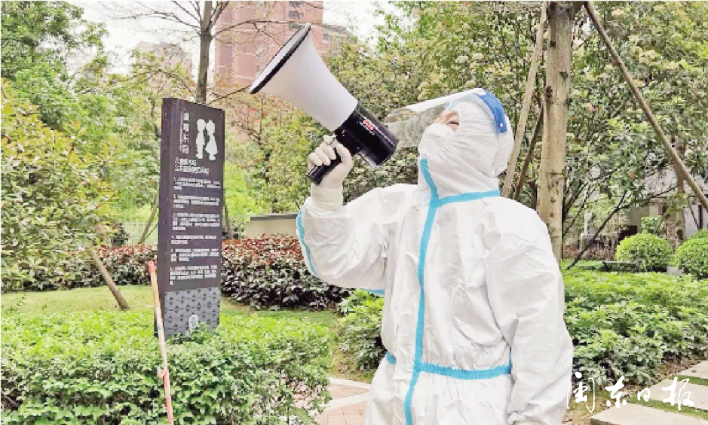 4月16日,苏维宁成为一名战“疫”大白。受过小主持人培训的他,拿起扩音喇叭,开始用字正腔圆的播音腔喊楼。“刚开始蛮有新鲜感的,但整整5个小时,真的很辛苦。想到大家都在坚持,我也不能拖后腿。”苏维宁稚嫩的脸上满是自豪。