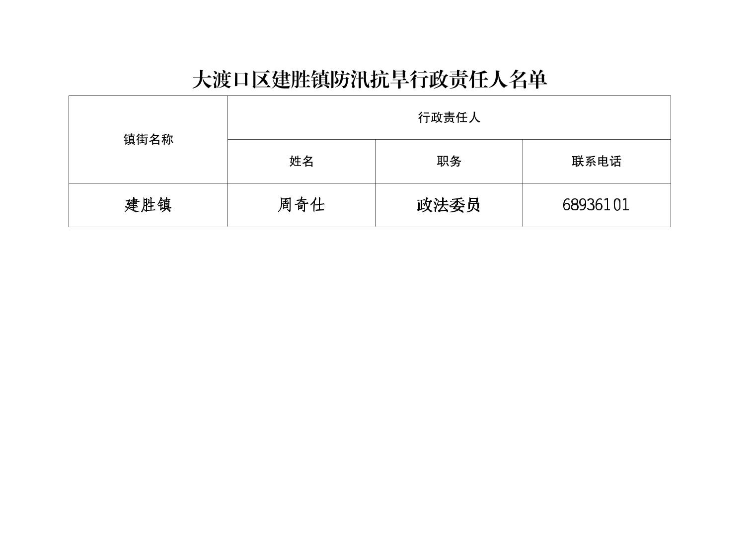 大渡口区建胜镇防汛抗旱行政责任人名单
