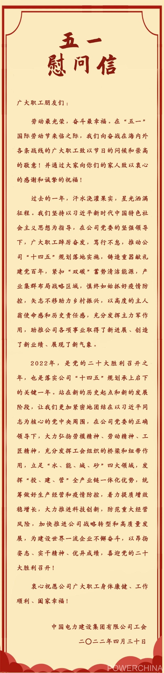 致全体职工“五一”劳动节的慰问信