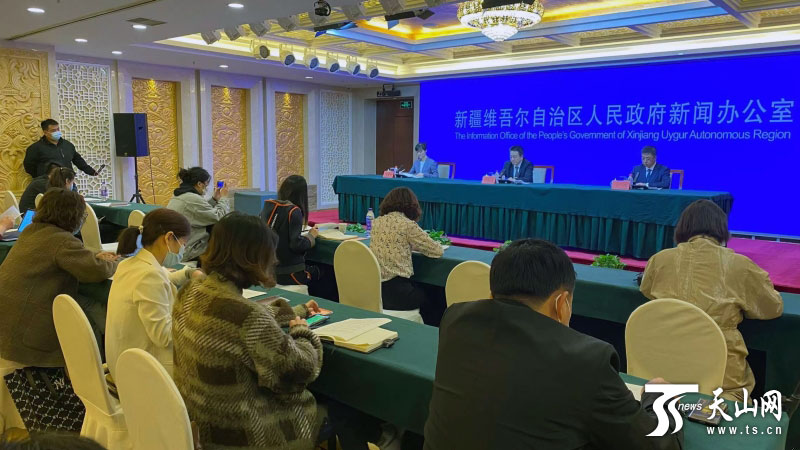 2022年第一季度自治区国民经济运行情况新闻发布会现场。天山网-新疆日报记者石鑫摄