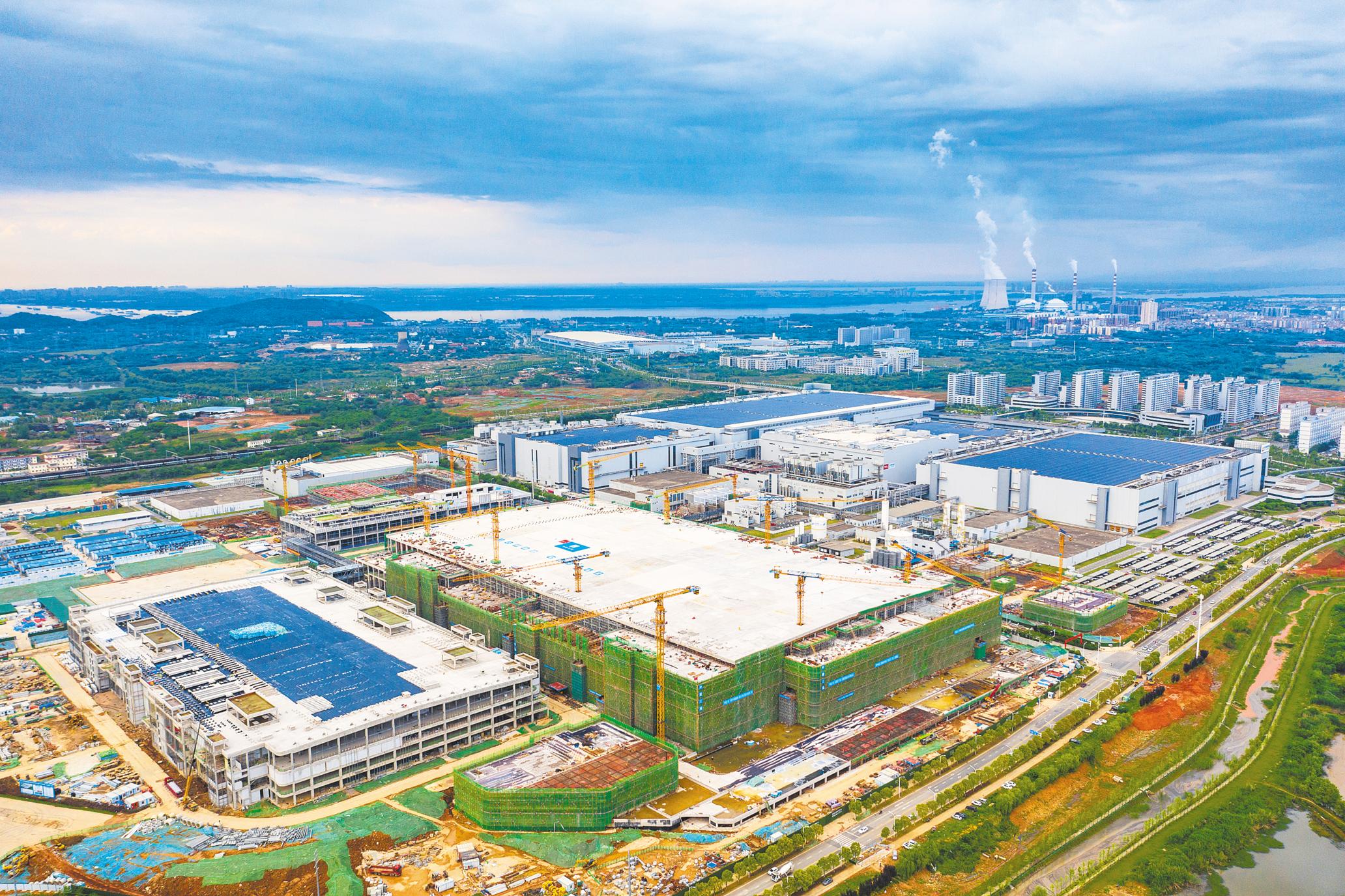 4月26日,武汉东湖高新区,TCL华星半导体新型显示器件生产线扩产项目主厂房鸟瞰。 该项目为TCL华星t3产线的扩产项目。随着TCL华星与三星、小米等头部品牌客户的合作不断深化,面板需求不断增加,TCL华星新增投资150亿元对t3项目建设扩产。扩产项目主厂房已提前封顶,预计2023年6月实现量产。 (魏铼 摄)