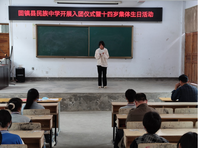 为引导广大团员青年厚植爱党、爱国、爱社会主义的情感,继承和发扬“五四”精神,牢记初心使命跟党走,4月29日上午,固镇县民族中学于在阶梯教室开展集中入团仪式暨十四岁集体生日活动。