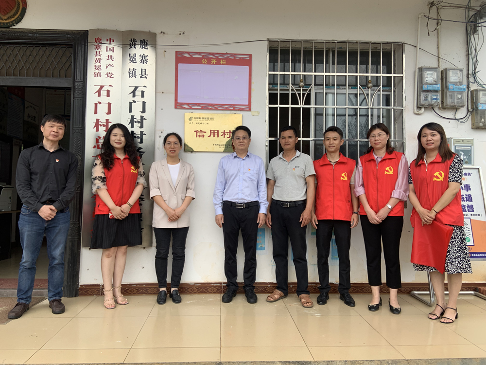 4月26日,黄冕镇石门村后盾单位——中国邮政集团有限公司柳州市分公司党委调研组到石门村调研,并开展“邮政金融助力石门村实现乡村振兴”活动。