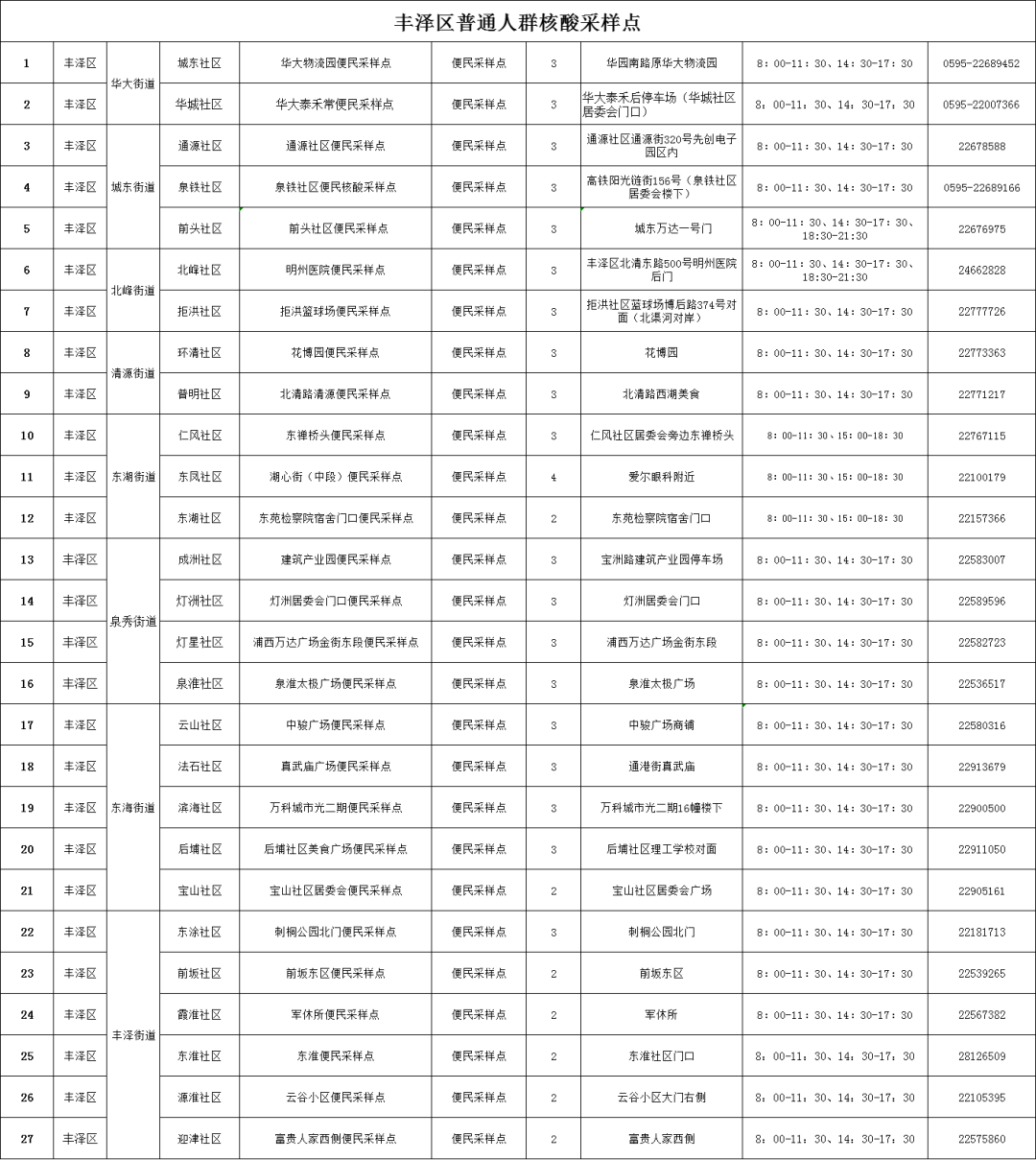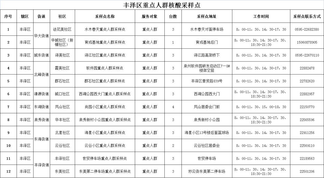 1.全区各重点人群采样点仅对丰泽区重点人群开放,采样对象须凭手机短信通知,按通告频次进行核酸采样;