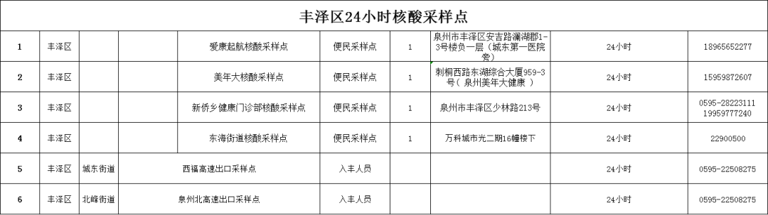 5. 开设24小时服务采样点,原则服务外地来丰旅游人员(须凭行程码检测),服务省外及省内涉疫地区入丰需24小时内完成核酸检测的人员;居民群众尽量前往其他采样点;