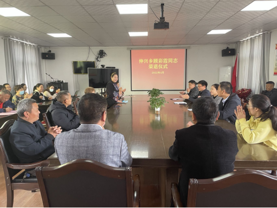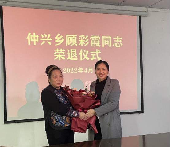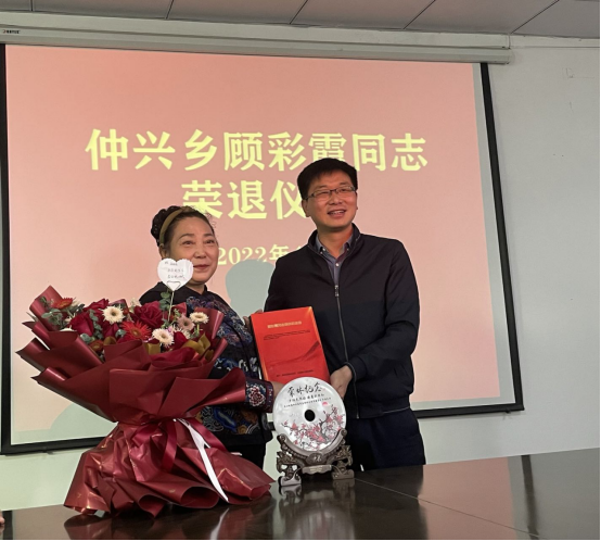 近日,仲兴乡文化广播电视体育站站长顾彩霞同志即将迎来退休的日子,近40年的工作生涯将在仲兴乡画上圆满的句号。2022年4月29日,仲兴乡工会联合会、乡文化站、乡组织部为顾彩霞同志举办了浓情暖意的退休仪式,感谢她的半生奉献。