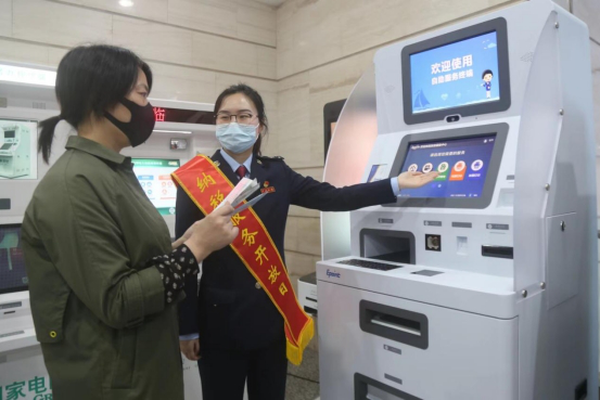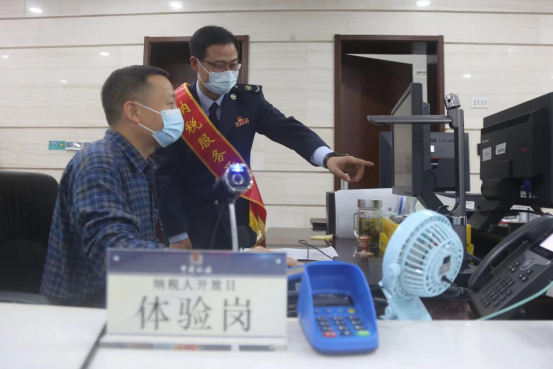 大厅内,“税费服务体验师”亲身体验了预约取号、“一窗受理”、我的南京APP“E办证”、票证自助打印等办税事项和服务产品,同时,税务人员对一窗式登记办税业务流程进行操作演示,让体验师代表现场进行换位体验,从便利办税等不同环节和角度,全方位地了解办税缴费服务的“台前幕后”,感受快捷办税流程及便民办税举措。