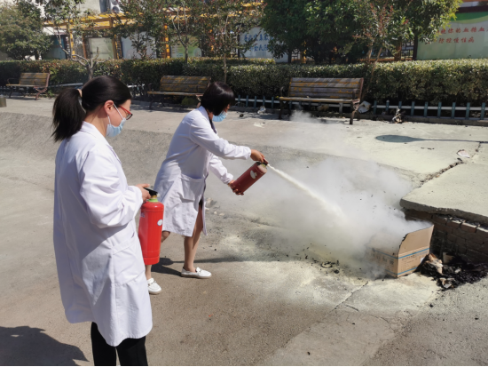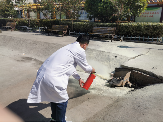 我院为提高全体职工及村医的消防意识,增强职工在紧急情况下的应变能力,自我防护能力,使每个员工掌握一定的消防知识,会正确使用灭火器,于5月5日下午3点在医院食堂门口进行了灭火演练。在演练中向职工讲解了如何正确使用灭火器,确保每一位职工都会正确使用。