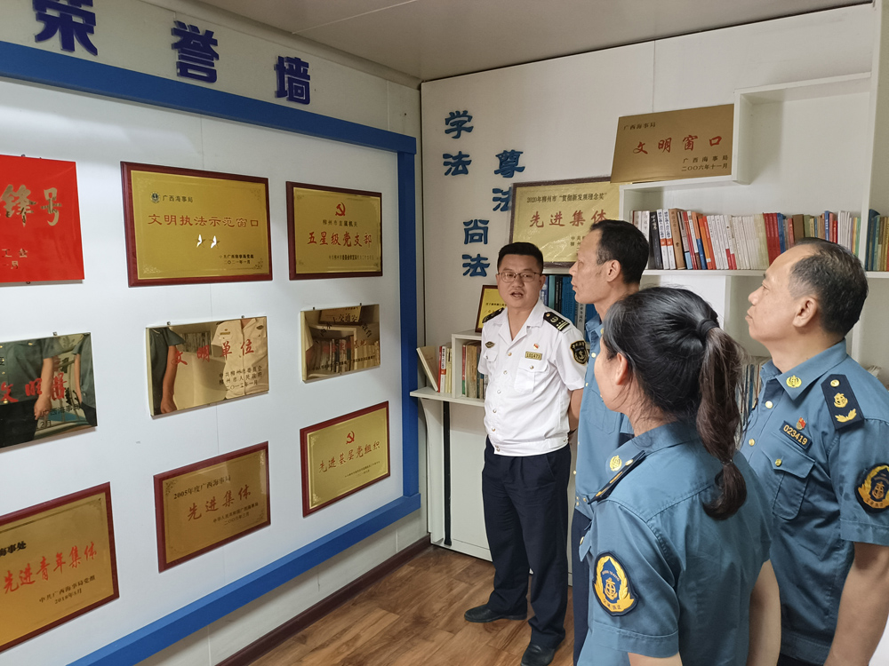 当天,鹿寨县交通执法大队的党员首先参观了柳州海事处党支部党员活动室、党建文化走廊。参观结束后,双方党员在党员会议室开展经验交流座谈会,双方支部书记各自介绍了本支部的组织架构情况和党建工作开展情况、星级党支部创建情况以及党建与业务相结合的经验做法、亮点特色和成效。双方党员就如何加强党建工作以及推进水上交通执法工作、提升柳江水道安全通过能力、做好汛期水上交通安全监管工作、船舶检验工作等业务技术问题开展热烈交流和讨论。
