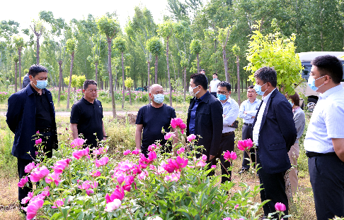 座谈会前,刘学圣一行前往常家镇许管村、五合村迁建现场、林下草药、林下松茸种植基地,实地调研许管村联排二层民居试点、滩区迁建、林下经济等工作。