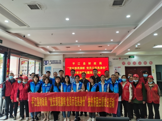 为深入开展以“党支部亮旗帜、组织生活亮规矩、党员示范亮身份、党建阵地亮形象”为主要内容的“四亮”主题活动,深化拓展机关党员进社区,4月29日,县财政局组织30余名党员志愿者到洪家塅社区开展“党支部亮旗帜 党员示范亮身份”扶贫济困主题党日活动。