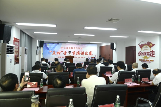 “五四”青年节到来之际,为充分展现供销系统青年干部职工朝气蓬勃、昂扬向上的精神风貌,4月28日上午,县供销合作联社举行“凝聚青春正能量,争当新时代的供销人”主题演讲比赛,县供销联社党组全体成员、机关中层干部、基层社、县属公司及机关老龄支部主要负责人担任比赛评委,县纪委监委派驻组组长李果现场指导。
