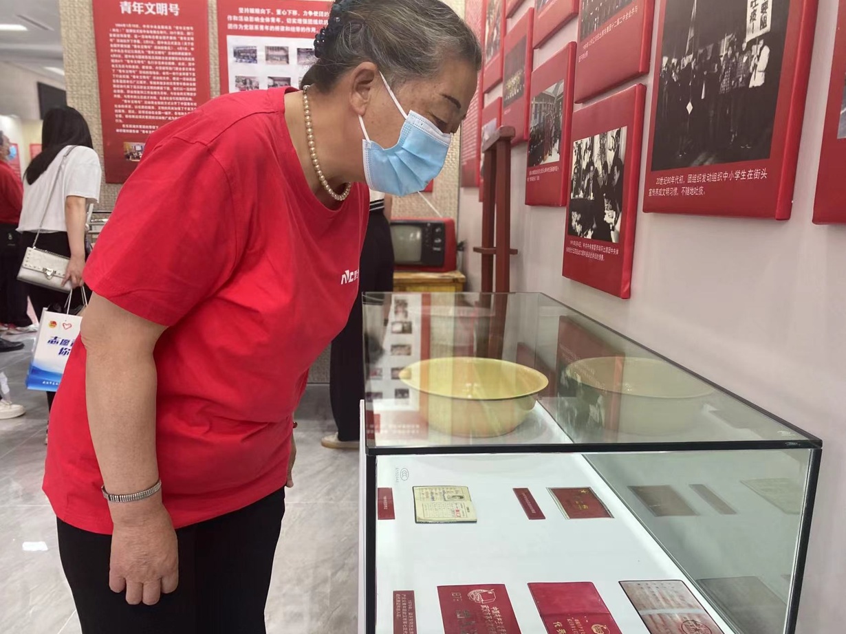 日前,共青团东西湖区委员会在东西湖区工人文化宫举办了“喜迎二十大,永远跟党走,奋进新征程”建团100周年展览,一批热心团干部主动捐赠当年的老物件进行展出,并与年轻团干部分享难忘故事。