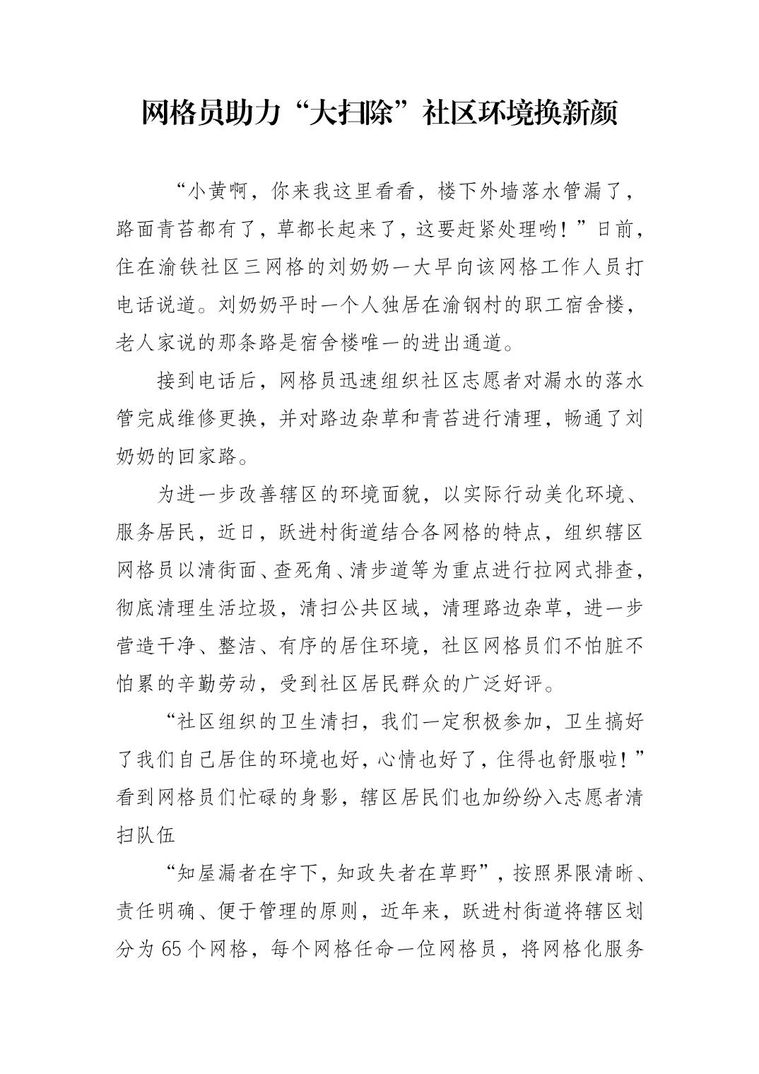 网格员助力“大扫除”社区环境换新颜