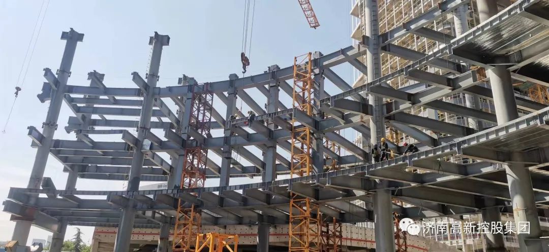 4台塔吊全部投运,6台升降机满负荷运转,30多台焊机进行钢结构焊接工作,工人正忙着钢筋绑扎、混凝土浇筑、管线安装、装饰装修等各项工作……5月14日,国家大数据产业示范基地一期项目现场一派繁忙景象。该项目一期总投资约31.9亿元,定位高端研发、行业应用、创新孵化等功能,依托齐鲁软件园,发挥国家新型工业化产业示范基地(大数据)集聚效应,将重点引进大数据、人工智能、云计算、工业互联网及物联网等新一代信息技术企业,打造产业规模过千亿的大数据产业聚集区和创新研发高地。目前,该项目工程进度过半,197米超高层已施工至第20层,正按照计划节点全速推进。
