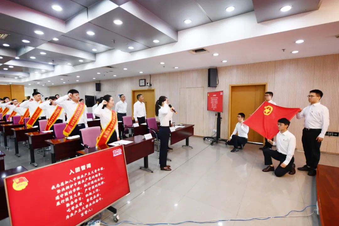 活动中,参加人员集体观看建团百年短片,共青团员重温入团誓词,集团公司领导为“两红两优”获得者代表颁奖,两位青年代表作交流发言。
